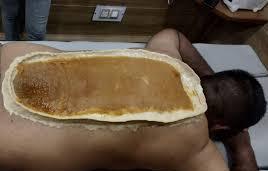 Once prepared, the Pichu is placed on the lower back, specifically targeting the area of pain or discomfort. The warm, medicated oil seeps through the Pichu, penetrating deeply into the tissues and muscles of the lower back. The Pichu is left in place for a duration of 30 to 45 minutes, allowing the oils to fully absorb into the skin and work on the affected area.